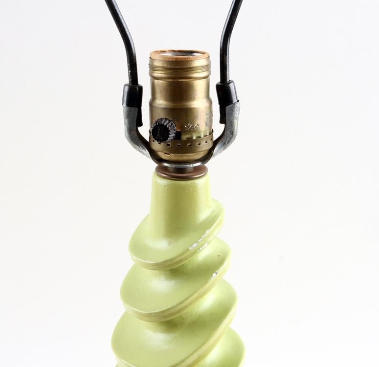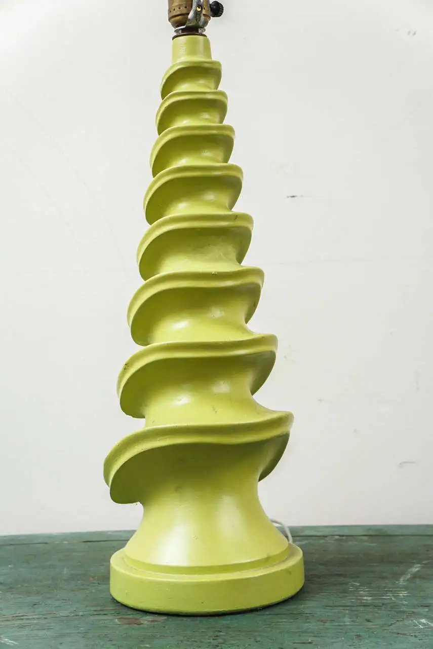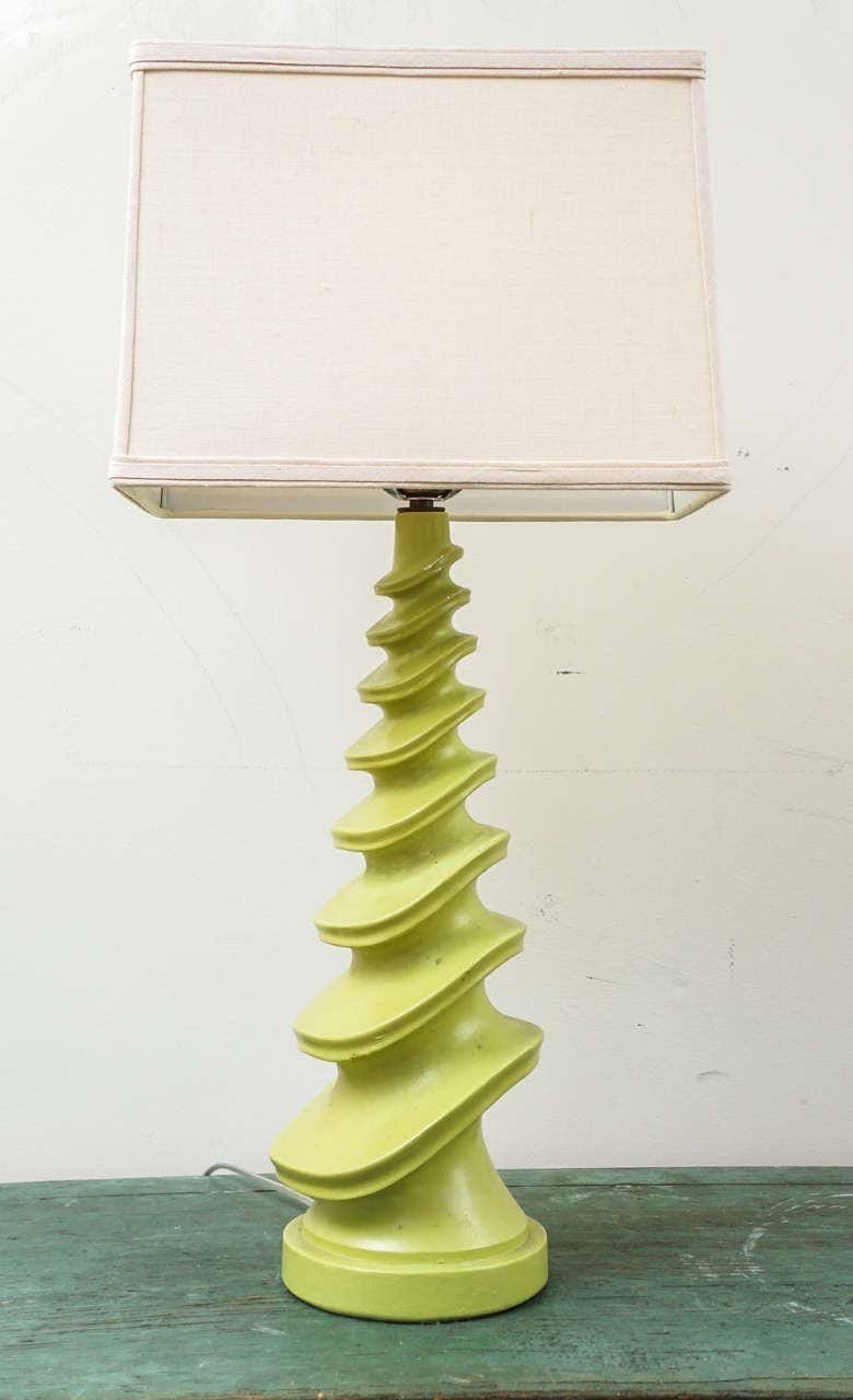 Distinctive lime green mid-century lamps in plaster with a wave/swirl design. Wonderful color and form.