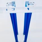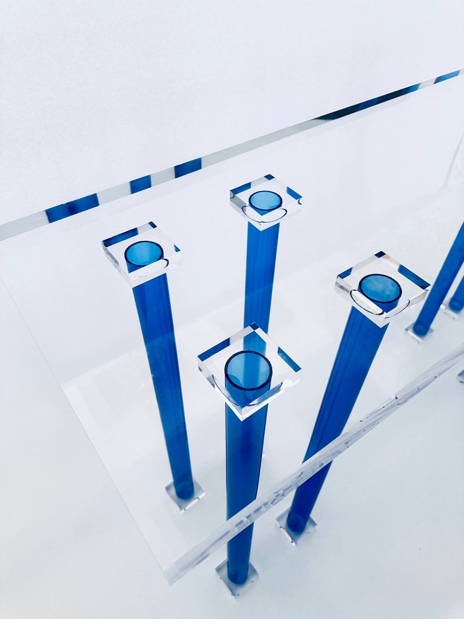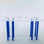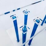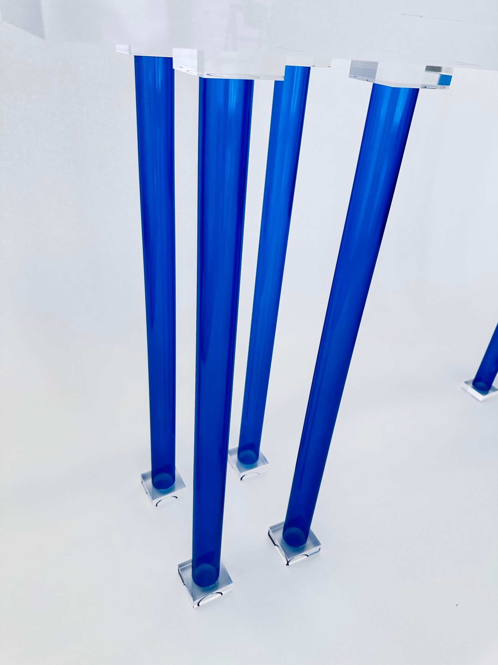 Crafted from ultra-clear Lucid acrylic, this console table features transparent blue legs that add a subtle pop of color while maintaining a sleek, modern aesthetic. Known for its exceptional clarity and high light transmission, the Lucid acrylic provides full visibility through the material, making it a stunning yet unobtrusive addition to any space. Its minimalist design enhances the visual appeal of whatever is placed on or around it, delivering a pristine, contemporary look.