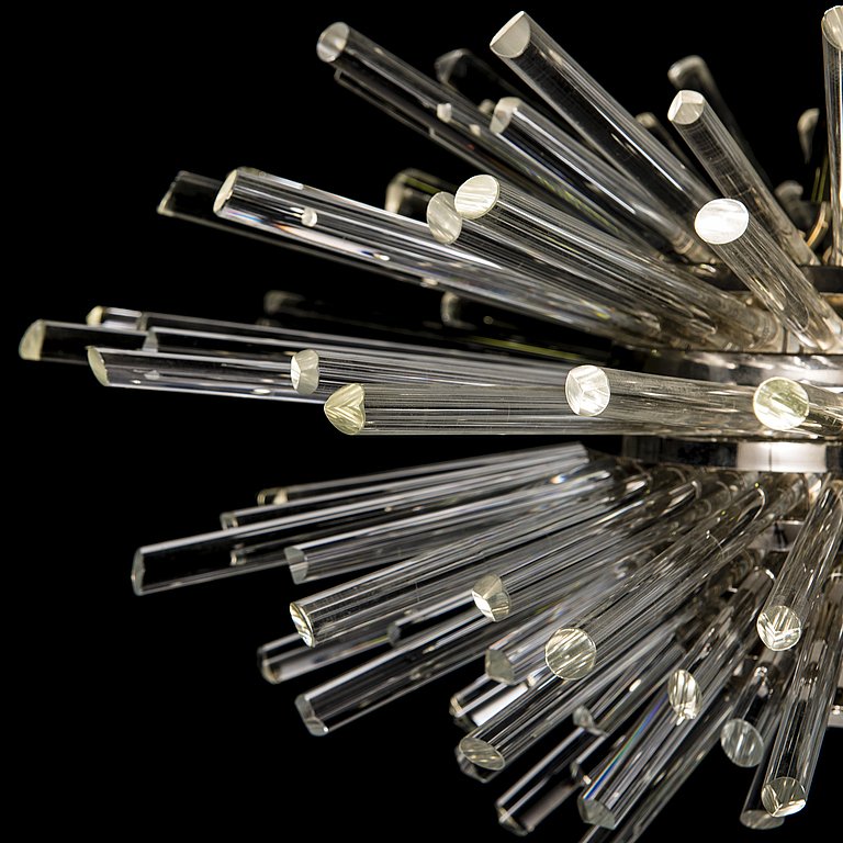 Sputnik Chandelier ‘Miracle’, Nickel, Glass Rods, Bakalowits,A fantastic Sputnik chandelier by Bakalowits & Söhne, Vienna, Austria, manufactured 2020. The fixture consists of a layered multi-tier structure made of nickel-plated brass rings and glass rods with faceted ends in different length. This chandelier was custom made to size. Excellent new condition.